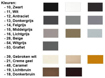 De genoemde RAL kleuren zijn door te vergelijken met een RAL kleurenwaaier vastgesteld.
