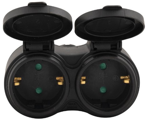 Verdeelstekker, 2-voudig, Horizontaal, voor Buiten